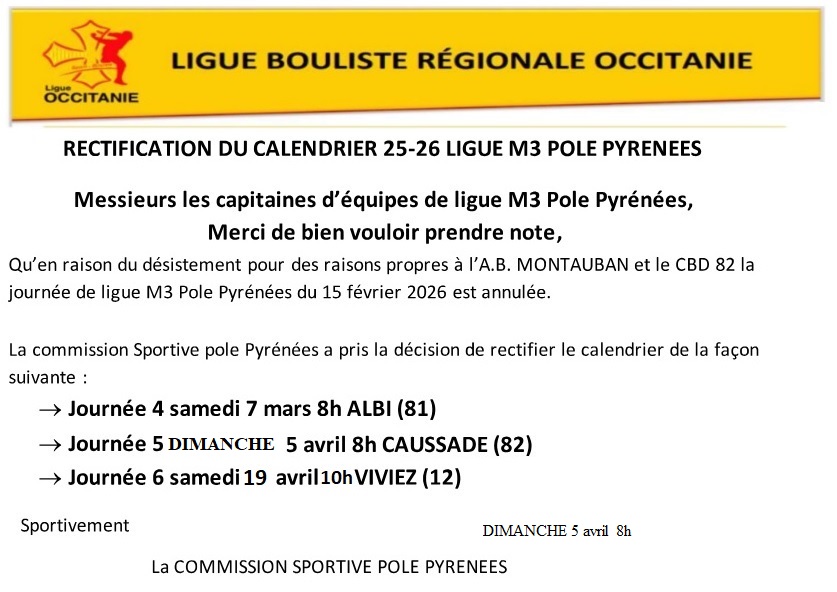 Ligue M3 Sport Boules les prochaines dates Pole Pyrénées 2026
